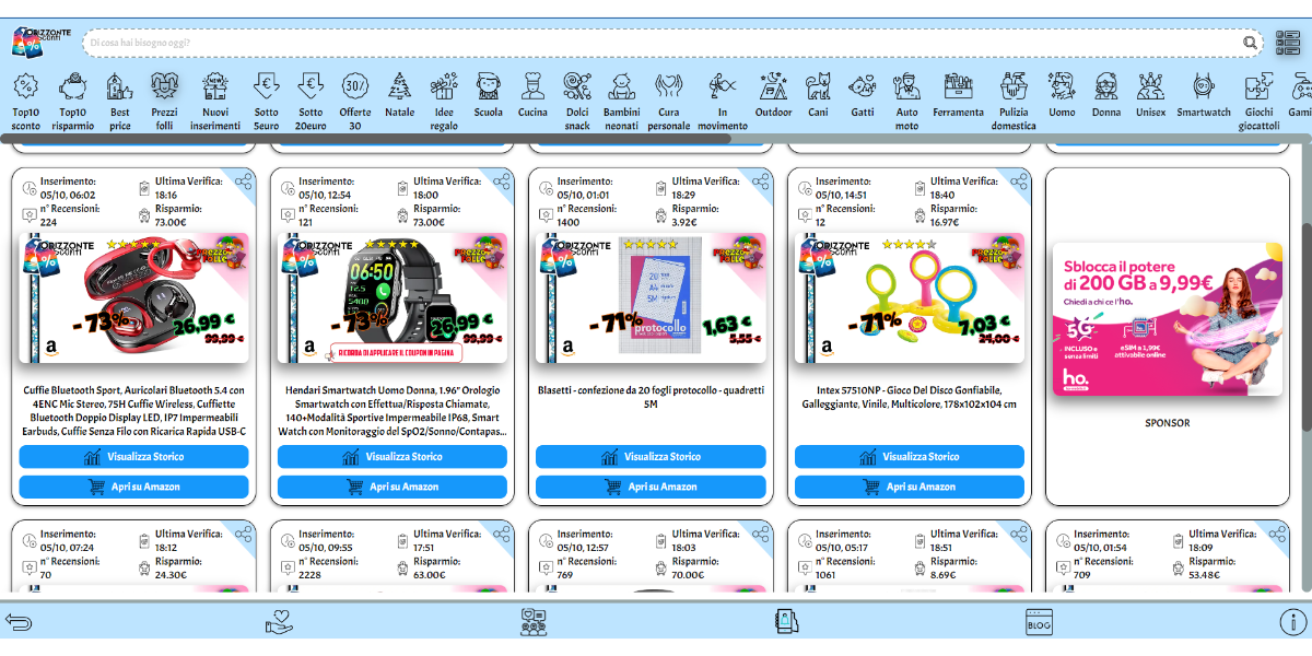 Per questo abbiamo creato Orizzonte Sconti, una piattaforma che raccoglie le offerte Amazon